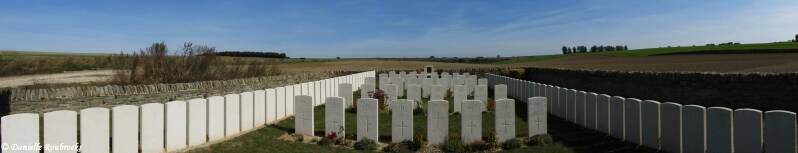 Targelle Ravine British Cemetery was made in September and October 1918. There are now over 100, 1914-18 war casualties commemorated in this site. Of these, a small number are unidentified. A large number belonged to the 9th Highland Light Infantry (Glasgow Highlanders). The cemetery covers an area of 348 square metres and is enclosed by a low rubble wall.