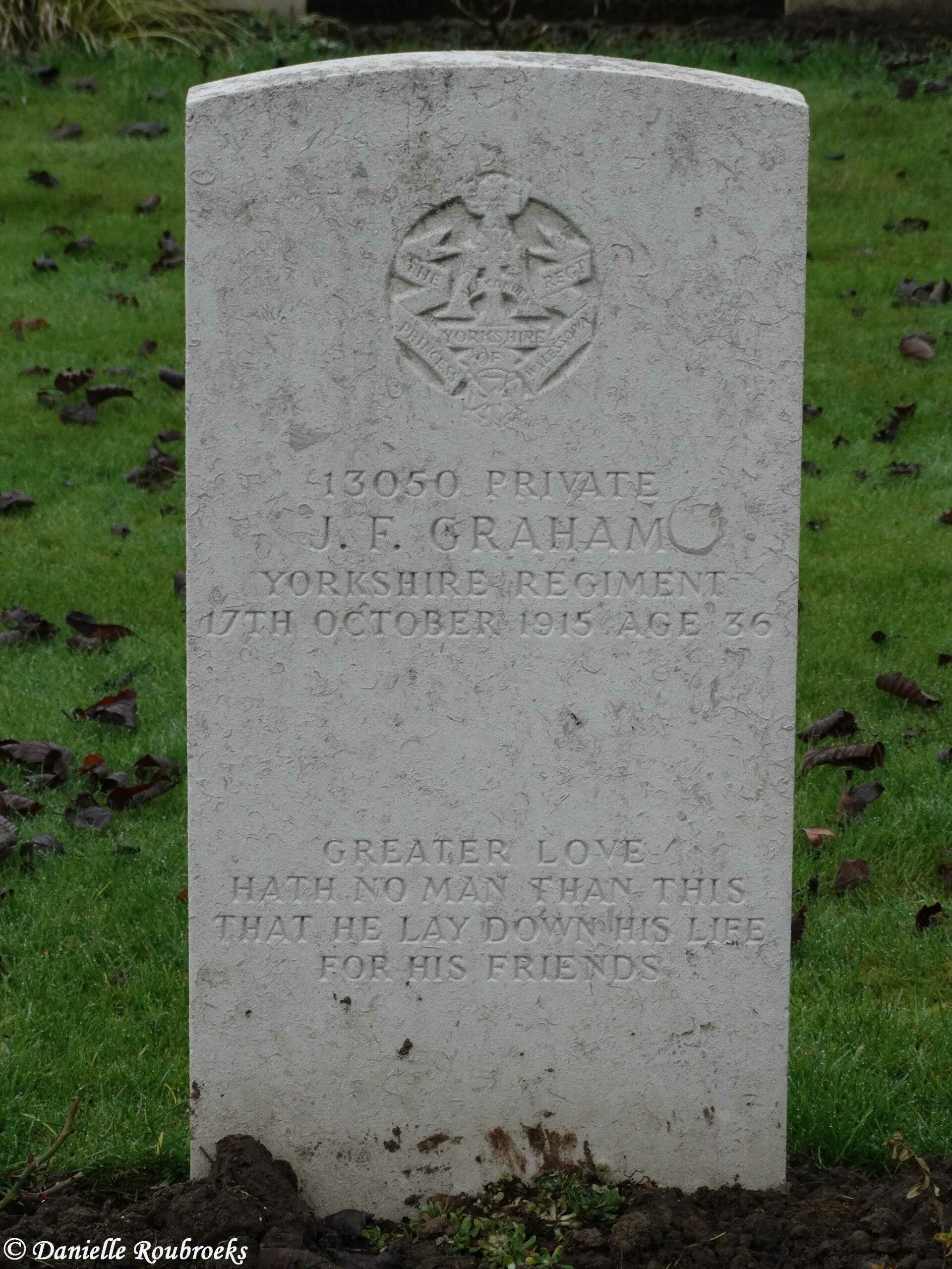 There are now over 100, 1914-18 war casualties commemorated in this site. The Cemetery covers an area of 1,065 square metres and is enclosed by a low rubble wall.