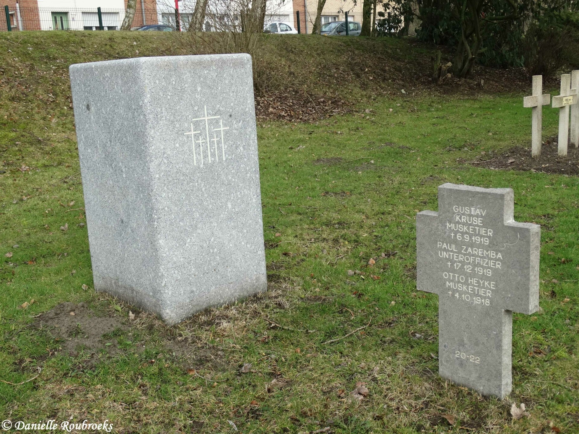The cemetery covers an area of 1,042 square metres and is enclosed by a wall. On the West side of it is Zuydcoote French National Cemetery, made after the Armistice, and containing over 1,000 French and 170 German graves.
