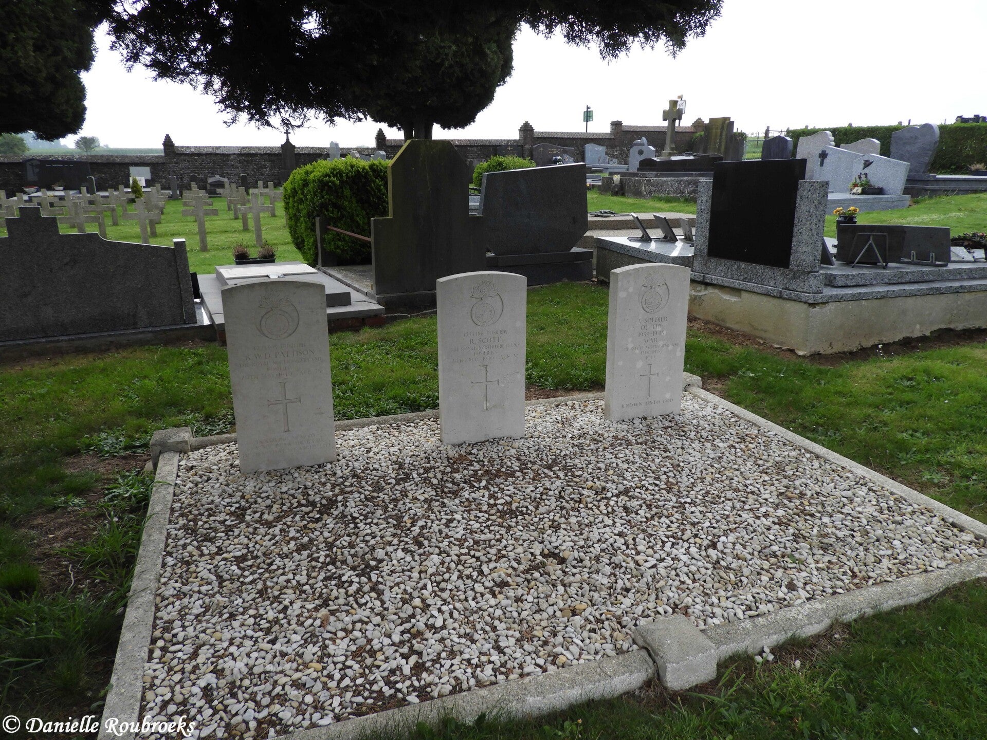 The cemetery is about half a mile south of the church on the D.62 road to the neighbouring village of Warlus. Near the south-western corner are the graves of three soldiers from the United Kingdom, one of whom is not identified.