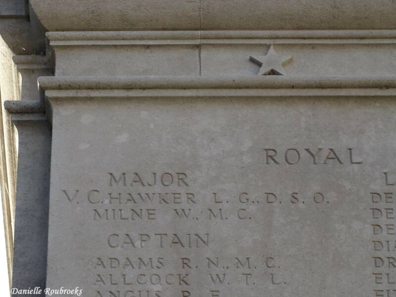 Commemorates almost 1,000 airmen of the Royal Naval Air Service, the Royal Flying Corps, the Australian Flying Corps and the Royal Air Force, either by attachment from other arms of the forces of the Commonwealth or by original enlistment, who were killed on the whole Western Front and who have no known grave.