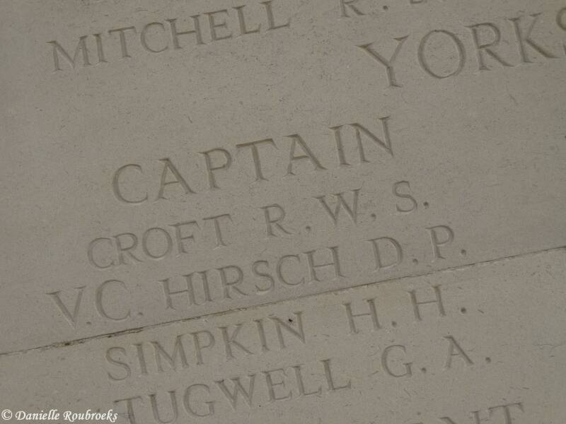 An extract from "The London Gazette", dated 14th June, 1917, records the following:-"For most conspicuous bravery and devotion to duty in attack. Having arrived at the first objective, Capt. Hirsch, although already twice wounded, returned over fire-swept slopes to satisfy himself that the defensive flank was being established. Machine gun fire was so intense that it was necessary for him to be continuously up and down the line encouraging his men to dig and hold the position. He continued to encourage his men by standing on the parapet and steadying them in the face of machine gun fire and counter-attack until he was killed. His conduct throughout was a magnificent example of the greatest devotion to duty."