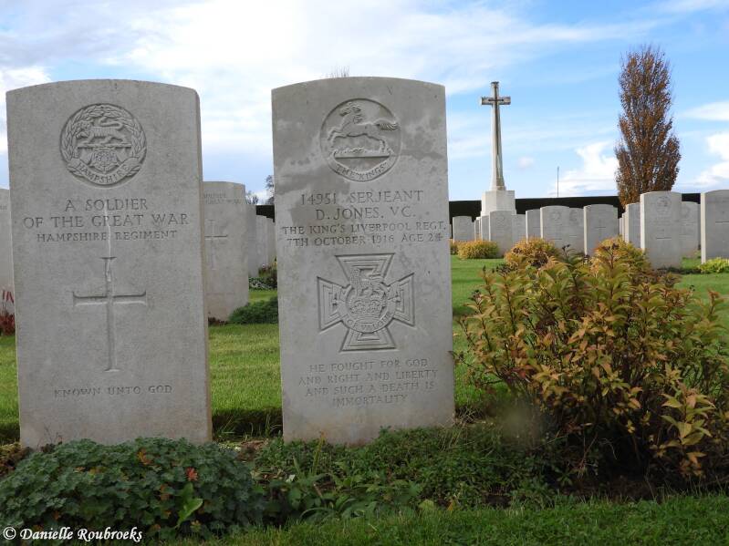 Bancourt British Cemetery now contains 2,480 burials and commemorations of the First World War. 1,462 of the burials are unidentified but there are special memorials to 43 casualties known or believed to be buried among them, and to one soldier buried in Bapaume Reservoir German Cemetery, whose grave could not be found on concentration. The cemetery was designed by Sir Edwin Lutyens.