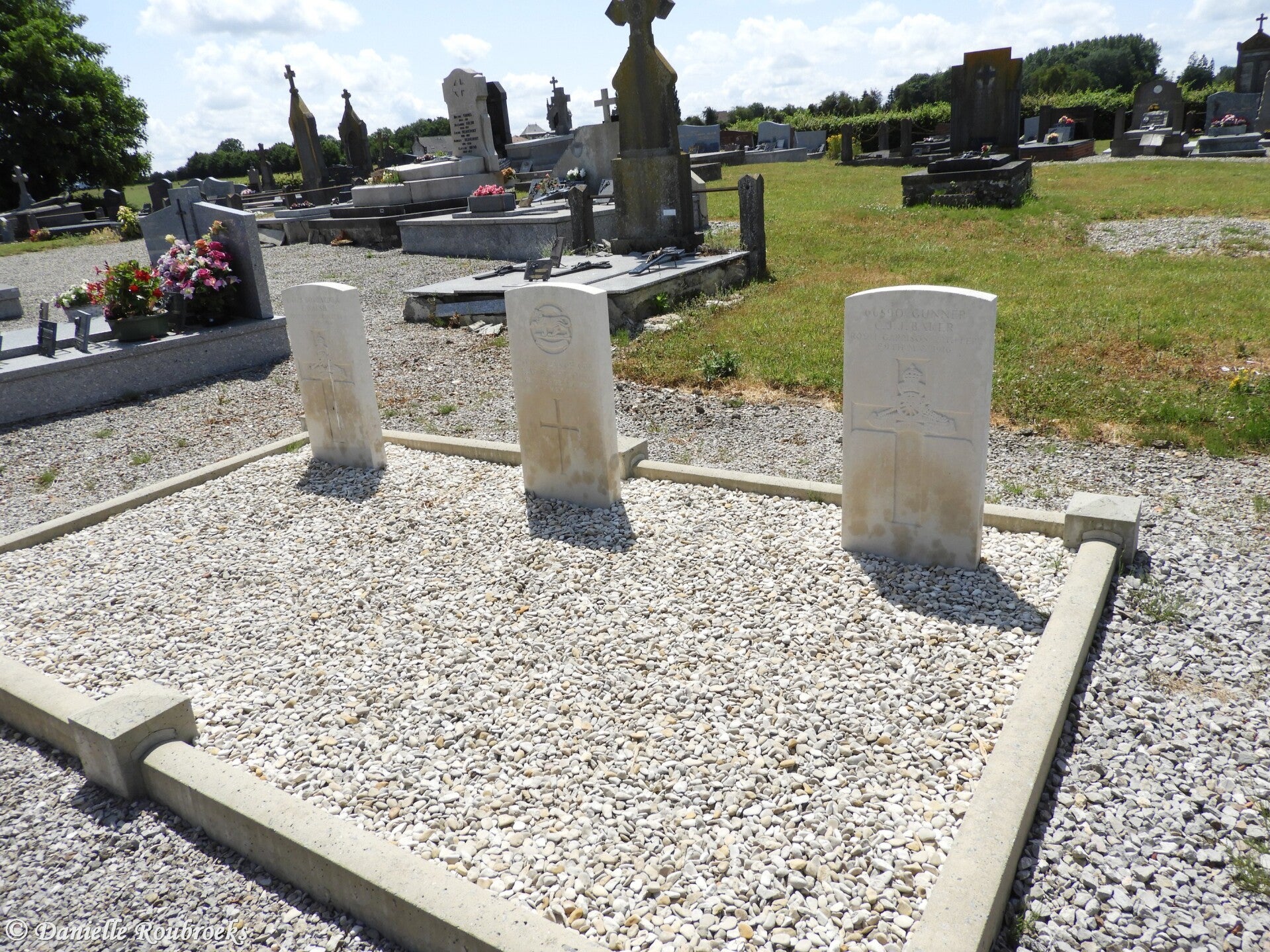 Five soldiers from the United Kingdom, who fell in May, 1916, and March, 1917, are buried in two groups in the Communal Cemetery, near the entrance.
