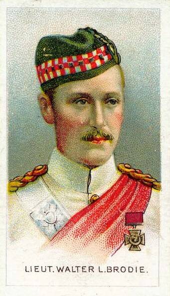 An extract from the "London Gazette," No. 29005, dated 12th Dec., 1914, records the following:-"For conspicuous gallantry near Becelaere on the 11th November, in clearing the enemy out of a portion of our trenches which they had succeeded in occupying. Heading the charge, he bayoneted several of the enemy, and thereby relieved a dangerous situation. As a result of Lt. Brodie's promptitude, 80 of the enemy were killed and 51 taken prisoners."