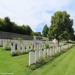 There are nearly 3,000, 1914-18 and a small number of 1939-45 war casualties commemorated in this site. Of these, two-thirds from the 1914-18 are unidentified and special memorials are erected to two soldiers from the United Kingdom and four from Canada who are known or believed to be buried among them. Other special memorials record the names of 44 soldiers from Canada and 12 from the United Kingdom, buried in other cemeteries, whose graves were destroyed by shell fire. The cemetery covers an area of 11,364 square metres and is enclosed by a rubble wall.