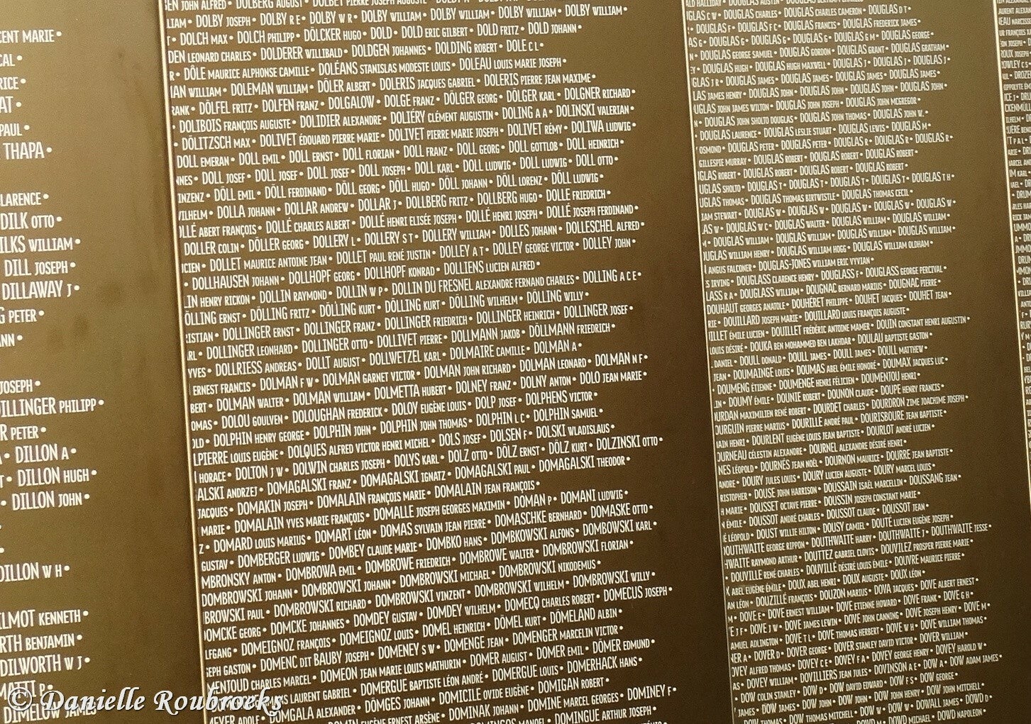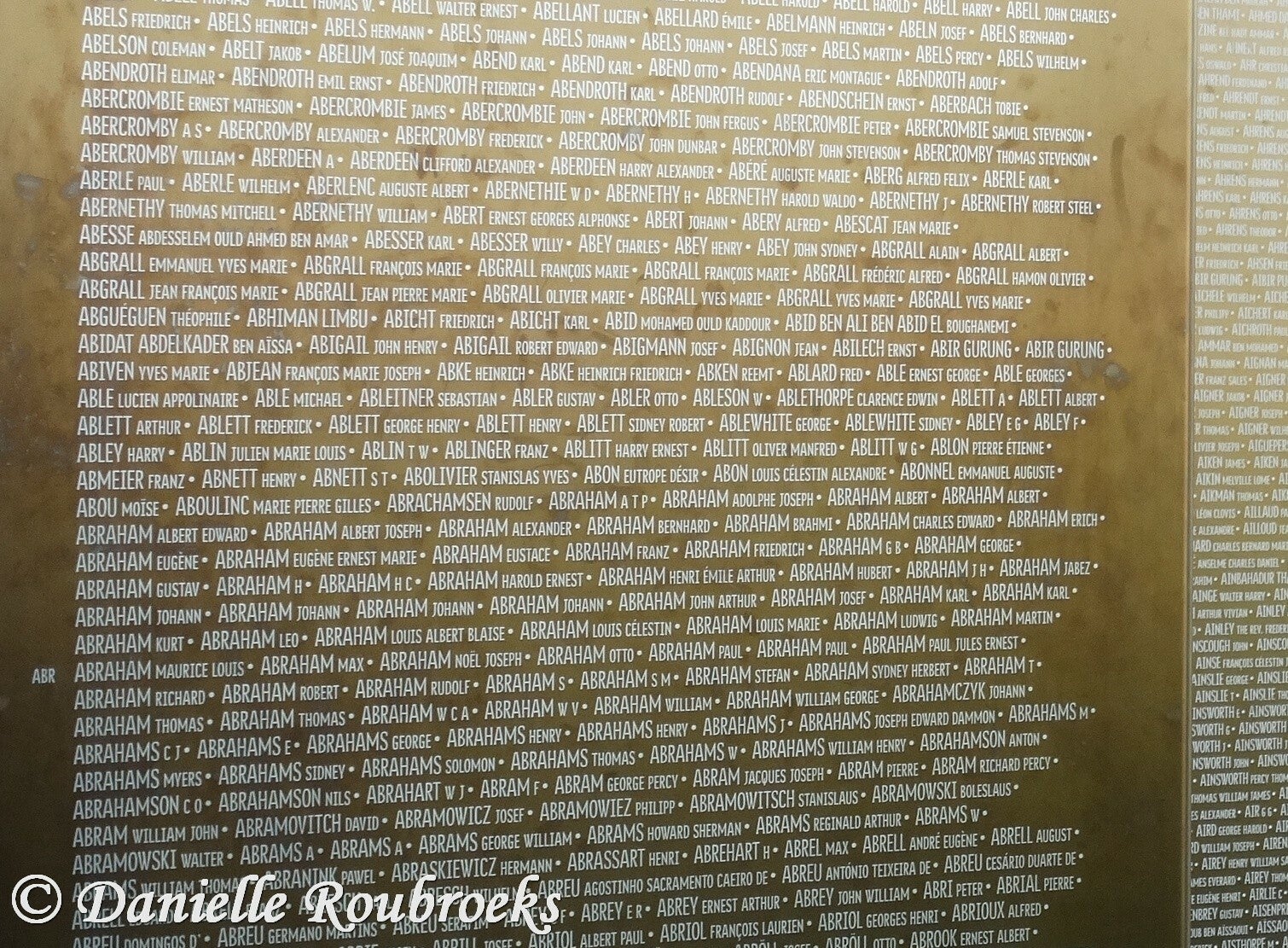 The 580 000 names are listed in alphabetical order, without any distinction made between rank or nationality, former enemies and friends side by side. (40 different nationalities)