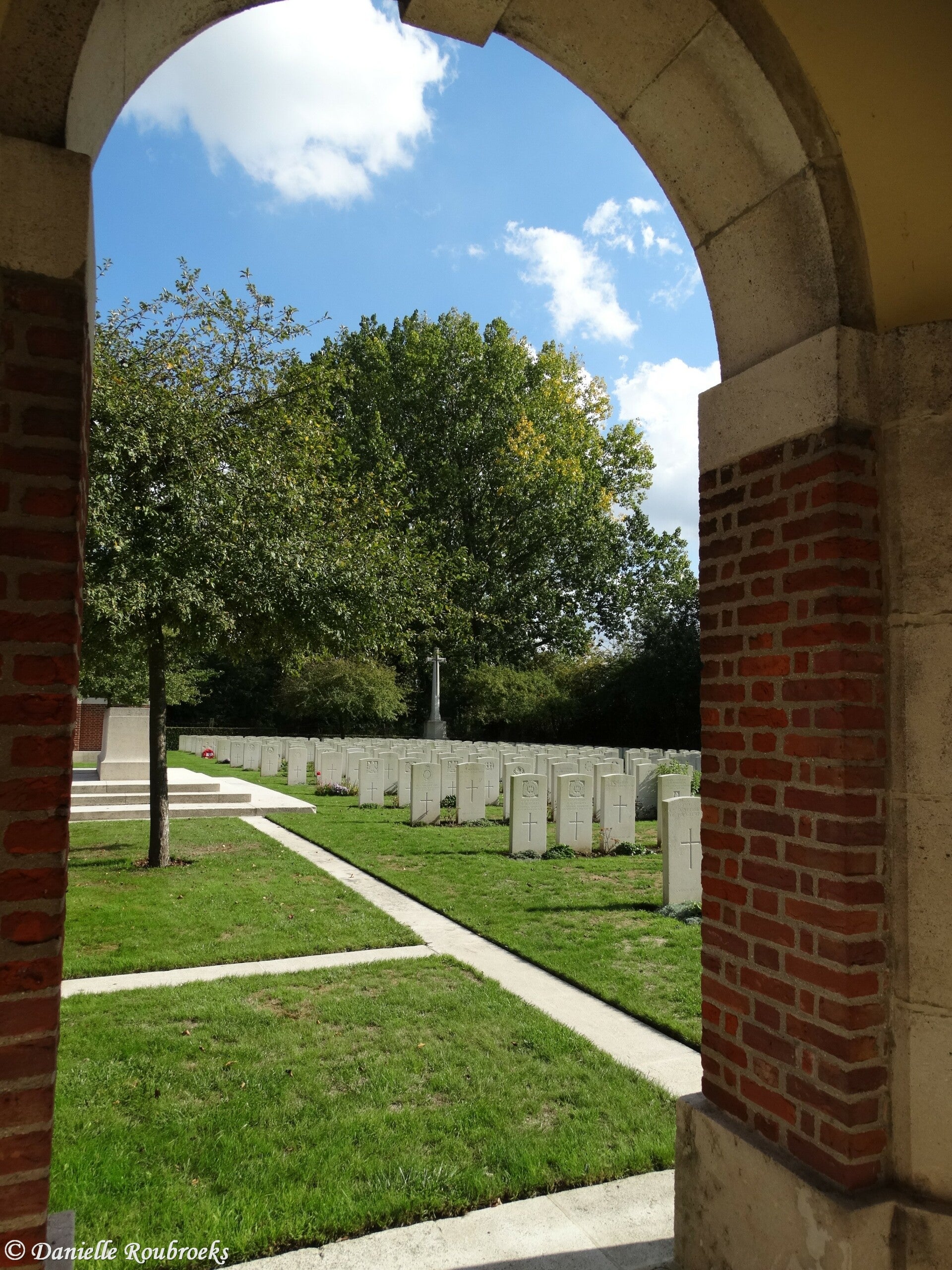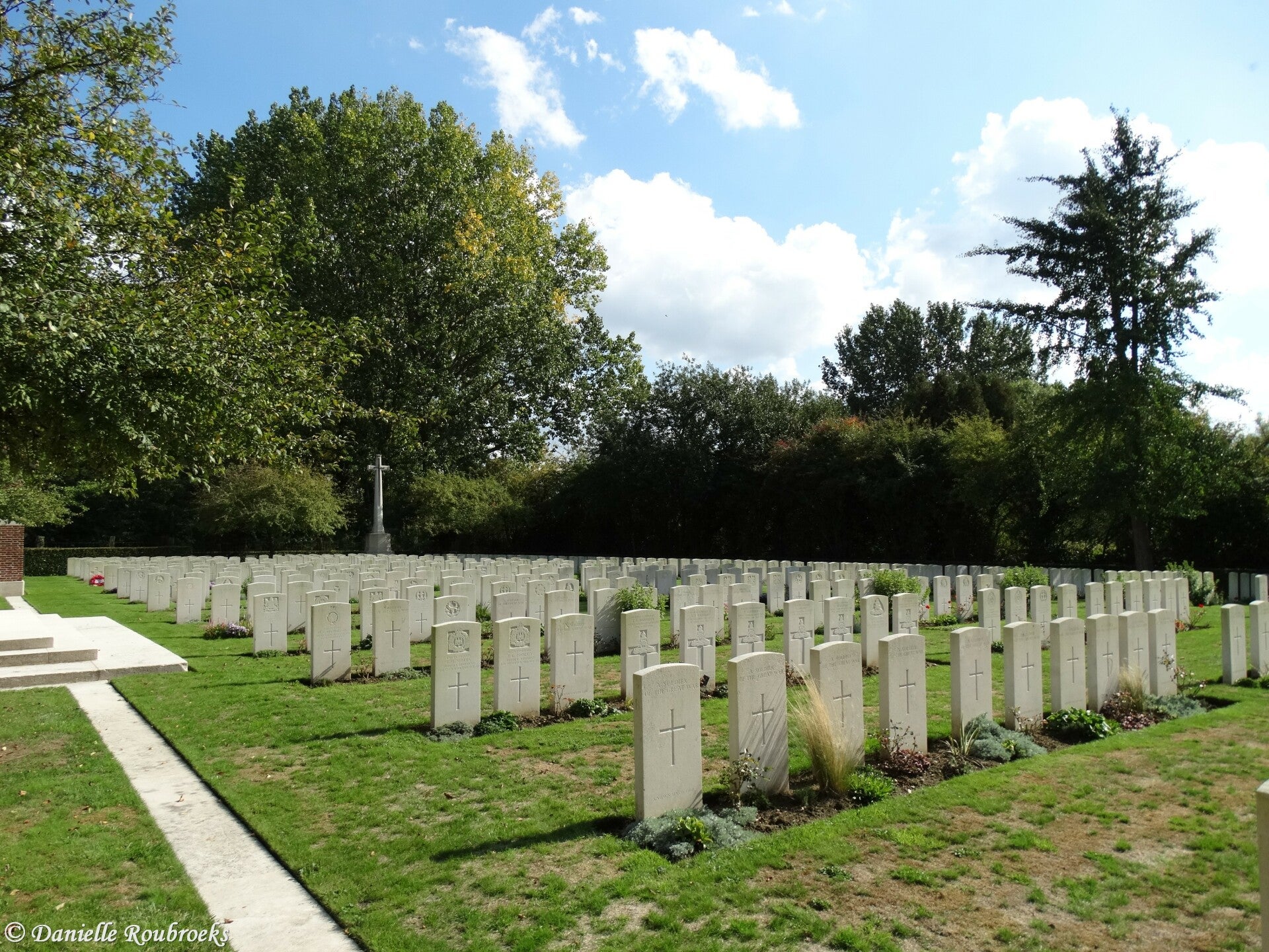 There are now over 800, 1914-18 war casualties commemorated in this site. Of these, nearly 350 are unidentified and special memorials are erected to three soldiers from the United Kingdom known to be buried among them. Other special memorials record the names of two soldiers from the United Kingdom, buried in Laventie South German Cemetery, whose graves could not be found. The Graveyard covers an area of 2,872 square metres.