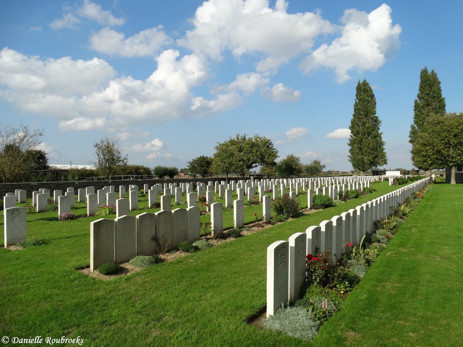 There are now 898 Commonwealth burials and commemorations of the First World War in the cemetery. 429 of the burials are unidentified but there are special memorials to four casualties known to be buried among them. Other special memorials commemorate 11 casualties buried in Abbey Wall Cemetery, La Boutillerie, whose graves were destroyed by shell fire, and six men of the Indian forces. The cemetery also contains ten German graves. The cemetery was designed by Sir Herbert Baker.