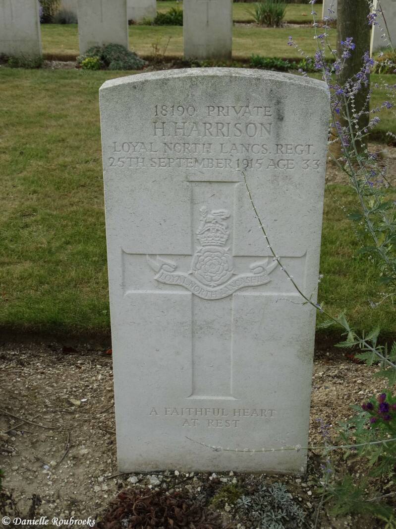 Private HARRISON, HENRY - Service Number 18190 - Died 25/09/1915 Aged 33