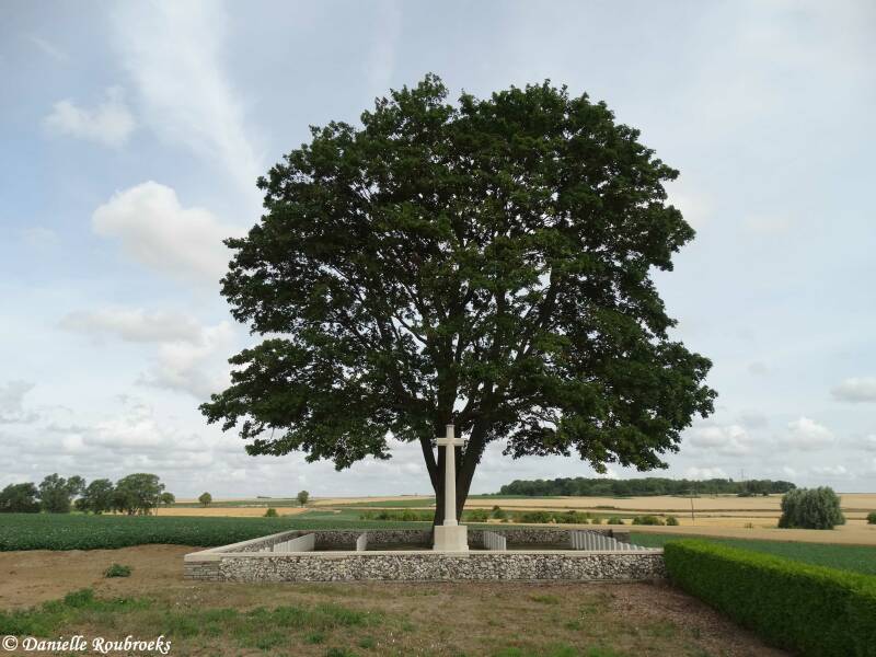 The cemetery was begun on 31 August 1918 with the burial of 31 officers and men of the 3rd Canadian Infantry Battalion, who had died the previous day in the capture of Orix Trench, in the big grave in Row A, now numbered 8-11. Ten further burials were made in Row A during the early part of September and in 1924-25, Rows B and C were added when graves were brought in from the battlefields and from Thilloy German Cemetery (this was about 900 metres North of Ligny-Thilloy village, close to the Albert-Bapaume road. It was a Dressing Station cemetery, which contained the graves of four Australian soldiers, three from the United Kingdom, and about 300 Germans).