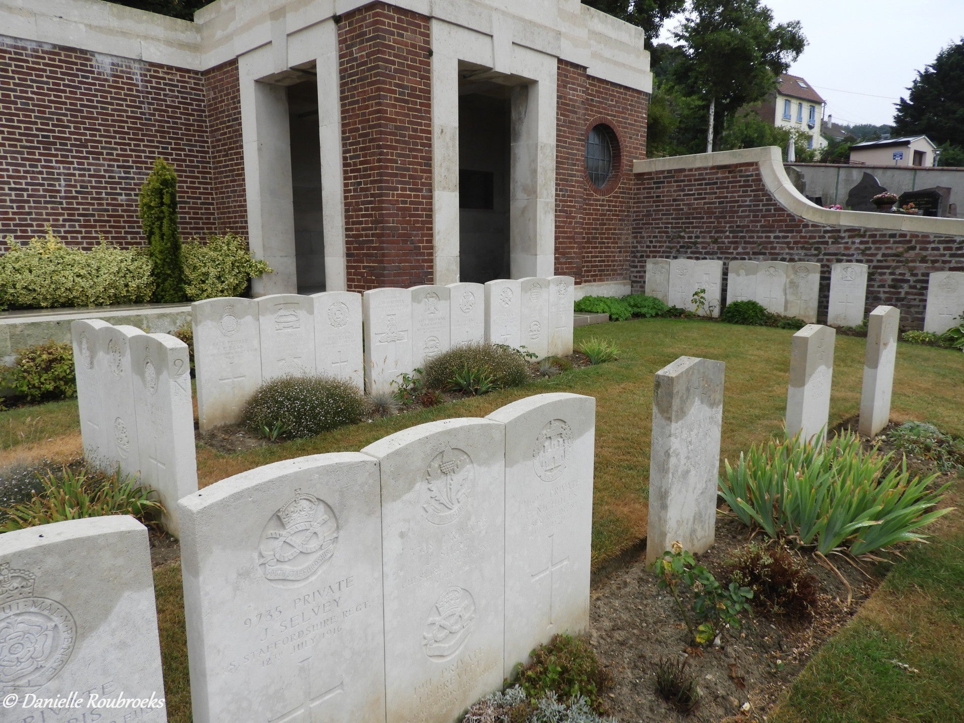 There are now 445 Commonwealth burials of the First World War in the cemetery. Three of the four Second World War burials are unidentified. The cemetery, one of the first three Commission cemeteries to be built after the First World war, was designed by Sir Reginald Blomfield.