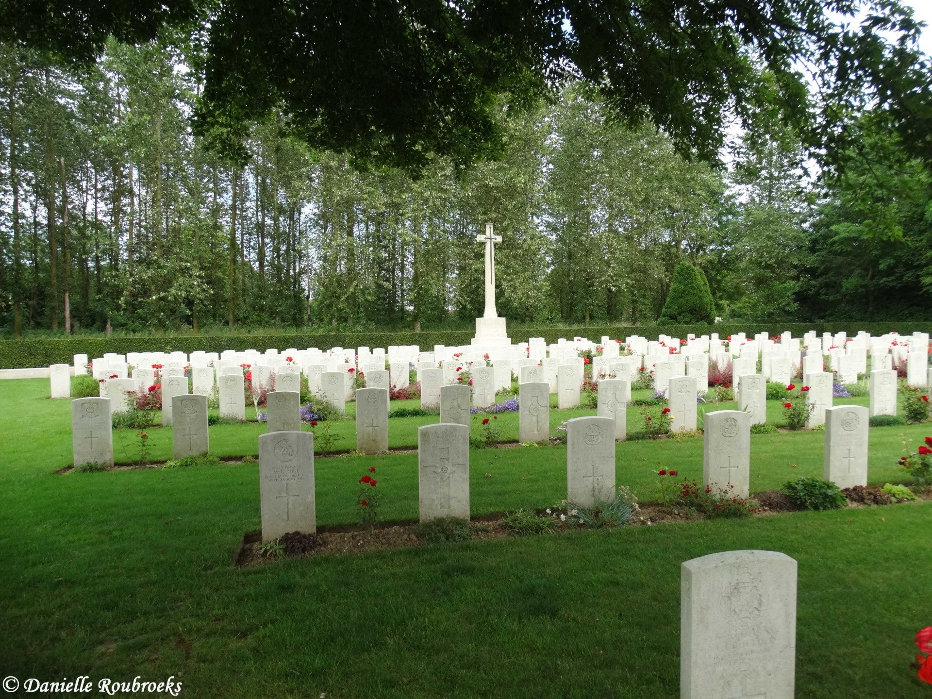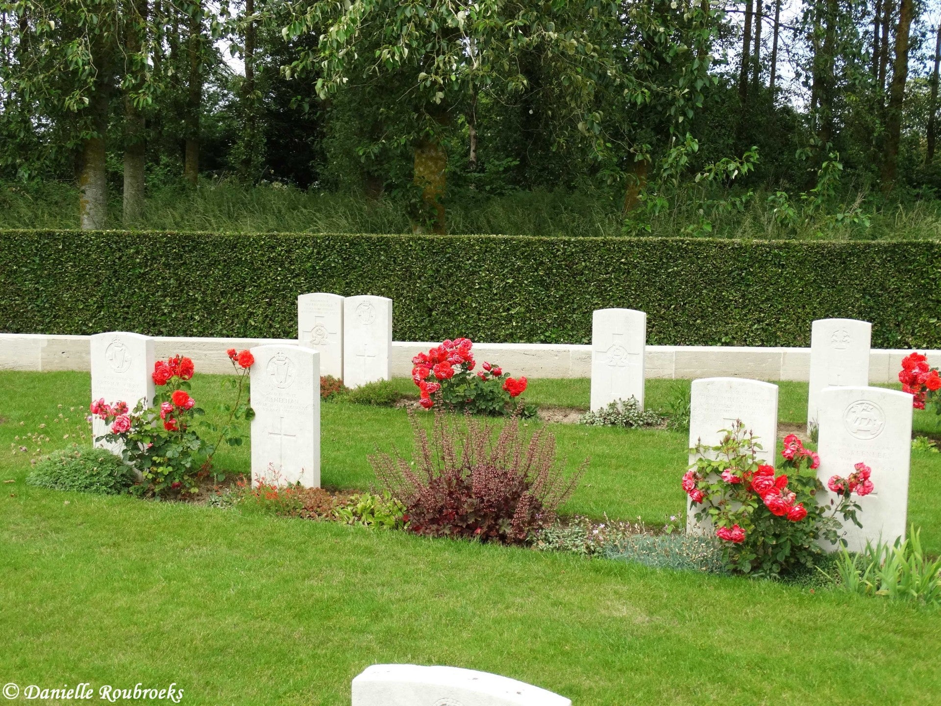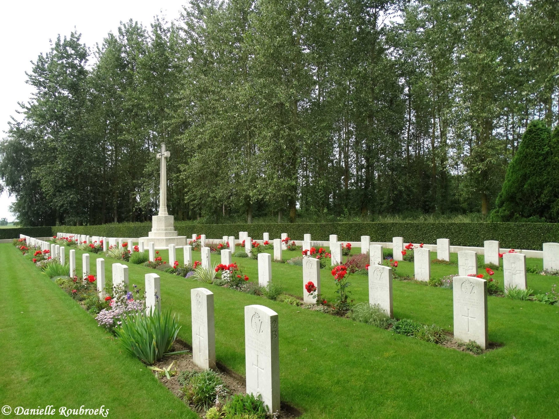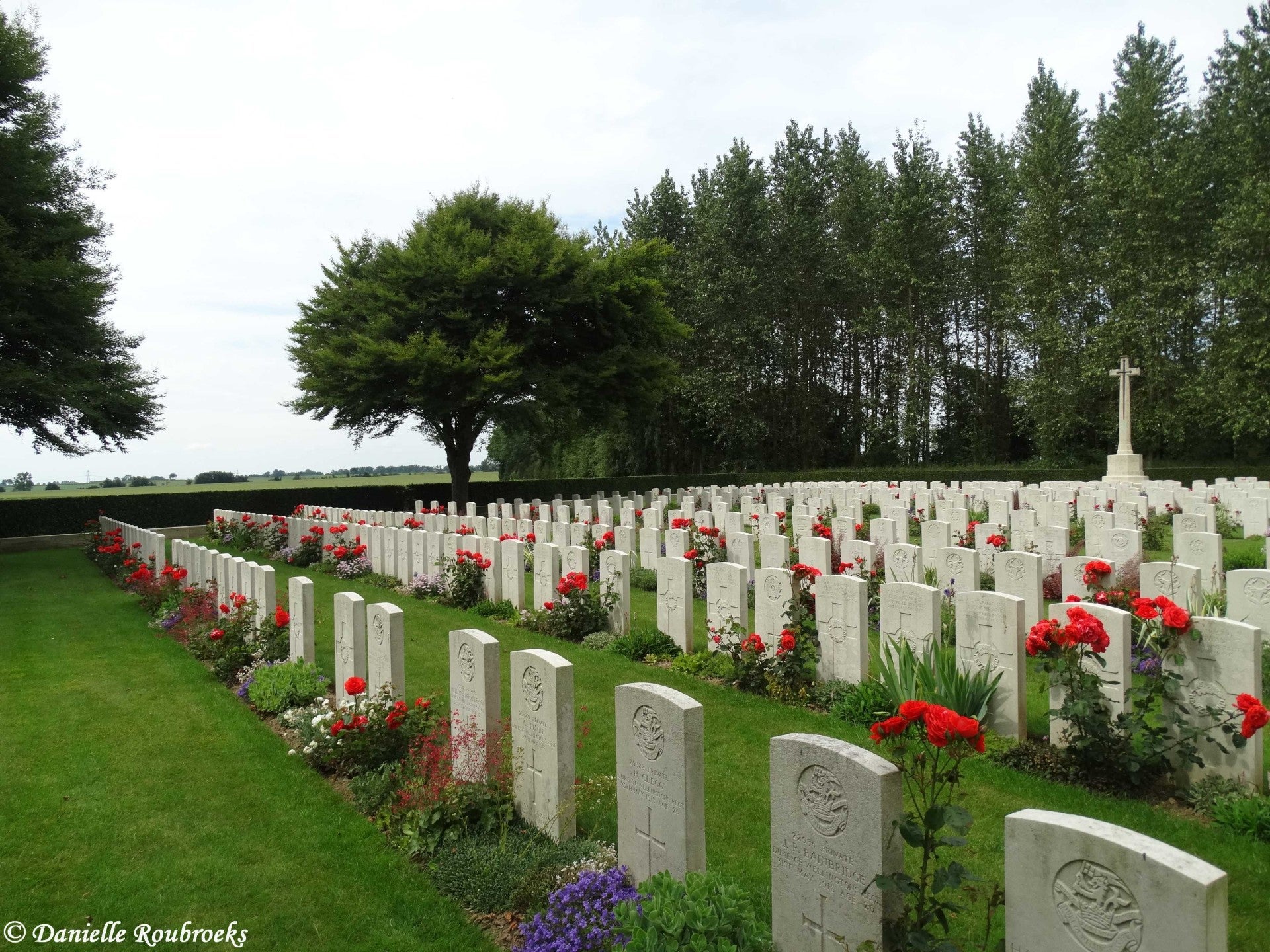 From the outbreak of the war to the summer of 1915, this part of the front was held by French troops, who began the military cemetery in June 1915. It continued to be used by Commonwealth field ambulances and fighting units, but burials practically ceased with the German withdrawal in February 1917. After the Armistice, 15 of the graves (Plot II, Row M, Graves 4-18) were brought in from scattered positions east of the cemetery.