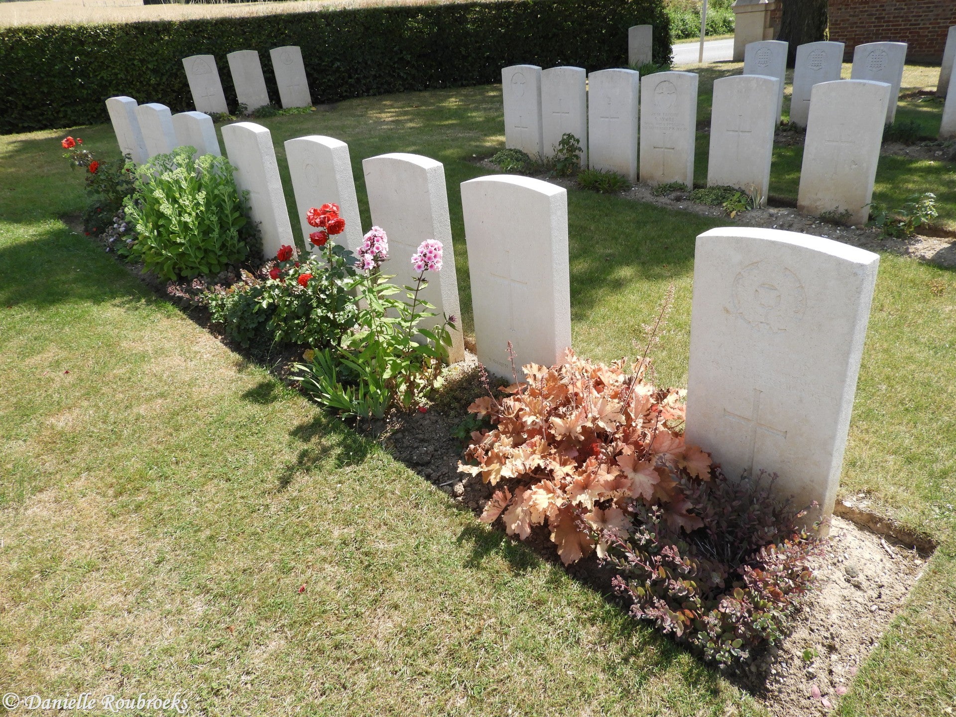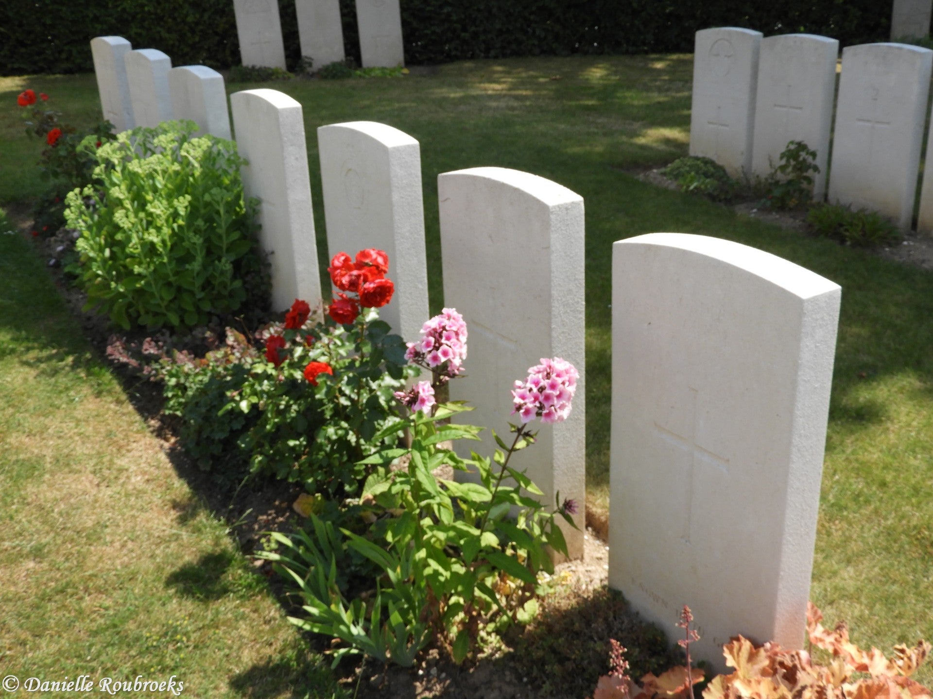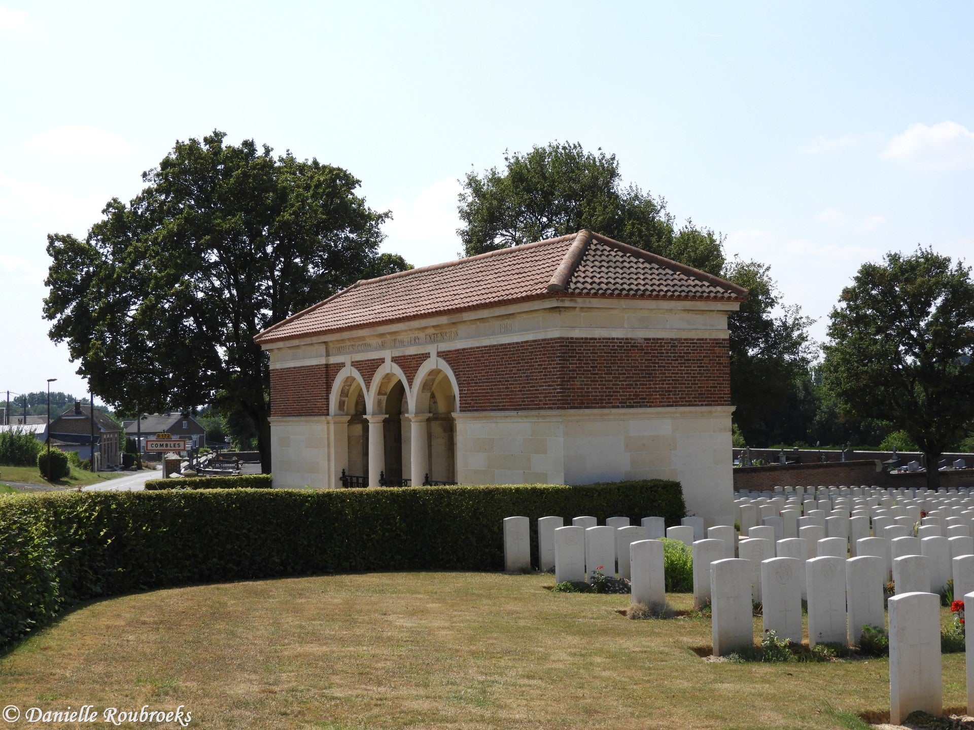 There are now over 1,500, 1914-18 war casualties commemorated in this site. Of these, over half are unidentified and special memorials are erected to nine soldiers from the United Kingdom and one from South Africa, known or believed to be buried among them. Other special memorials record the names of three soldiers from the United Kingdom, buried in Maurepas and Longtree Dump Military Cemeteries, whose graves were destroyed by shell fire. The Extension covers an area of 5,356 square metres. It is enclosed by brick walls on the North-East and South-West.