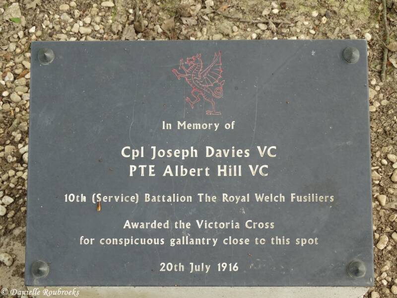 For most conspicuous bravery. On 20 July 1916, during the Somme Offensive, when 15280 Private Hill's battalion had been deployed under heavy fire, for an attack on the enemy in Delville Wood, France, the order to charge was given and he dashed forward. He met two of the enemy and bayoneted them both. Later, he was sent by his platoon sergeant, Hugh Green, to contact the enemy, and found himself cut off, being surrounded by over twenty Germans. He threw two hand grenades, killing and wounding about eighteen and scattering the remainder. He then joined a sergeant of his company and helped him to fight the way back to the lines. When he got back, hearing that his Company Officer, Captain Scales, and a scout were lying out wounded, he went out and assisted to bring in the mortally wounded Officer, two other men bringing in the scout. Finally, he himself captured two of the enemy and brought them in as prisoners. His conduct throughout was magnificent.