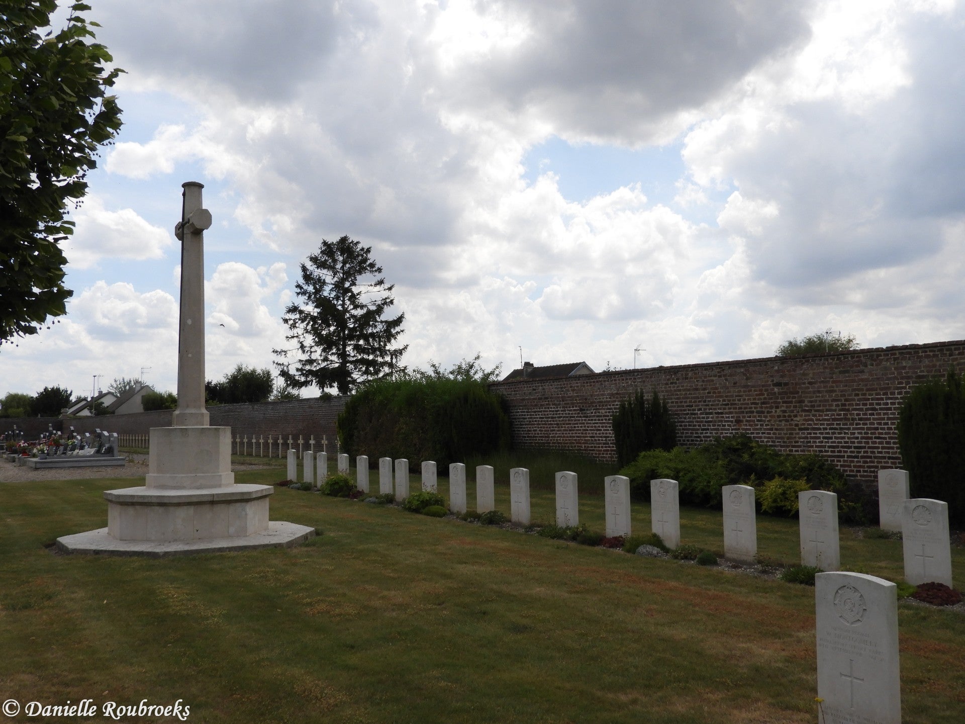 The communal cemetery contains 38 Commonwealth burials of the First World War. All date from March-October 1918.
