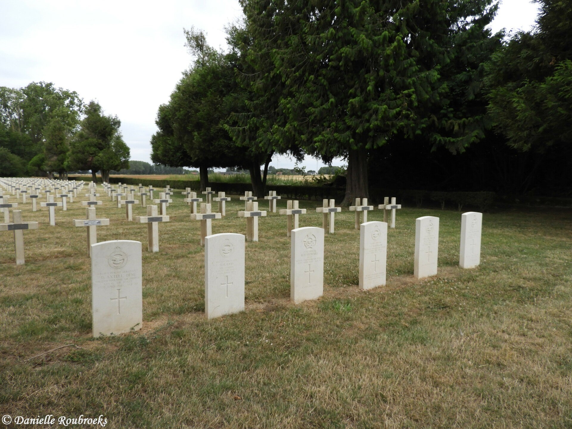 In the south-western corner are the graves of six airman who fell during the 1939-1945 War. Five of them belonged to the Royal Air Force and one to the Royal Canadian Air Force.