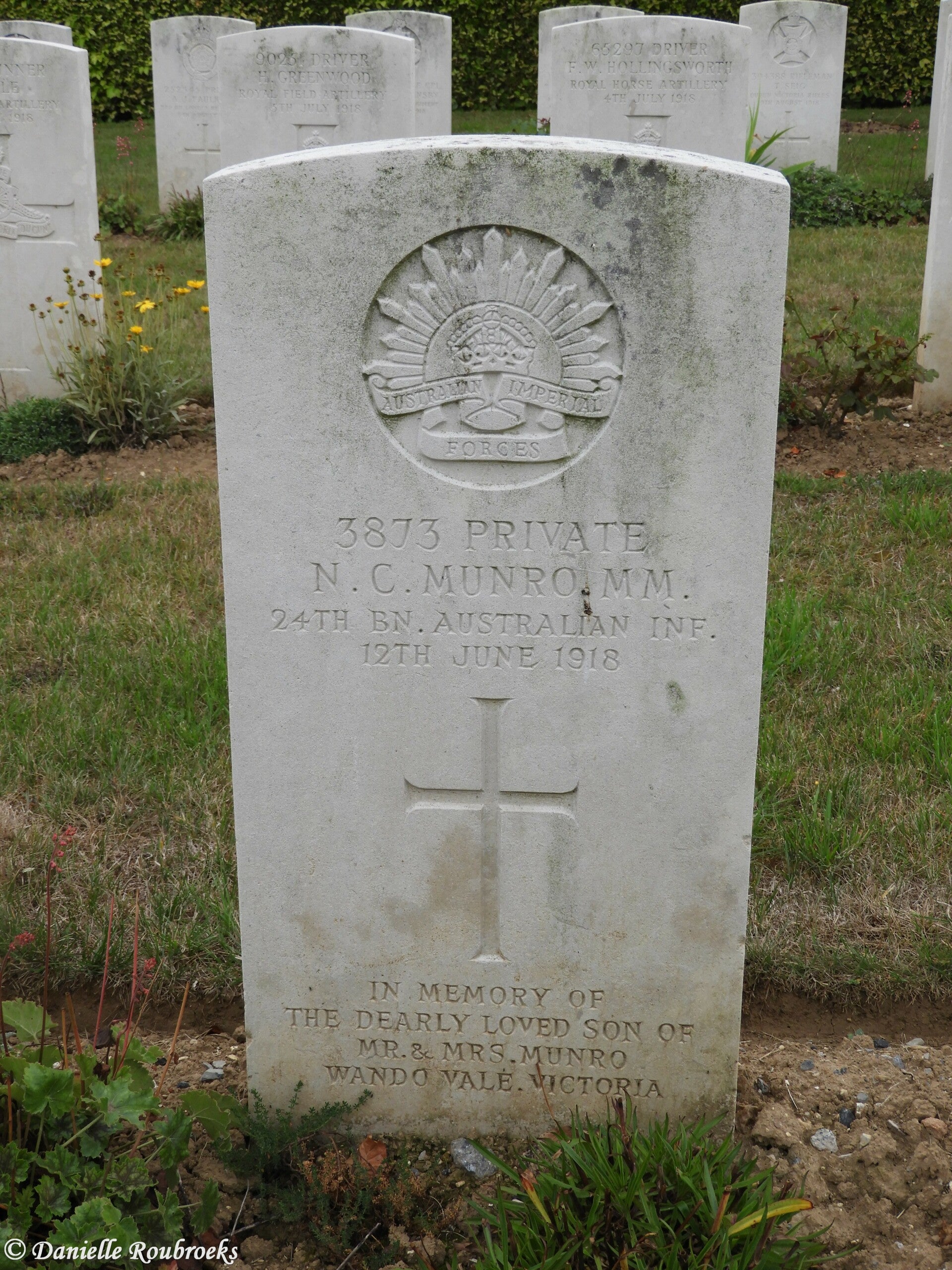 A farmer prior to his enlistment on 15 November 1915 he embarked from Sydney on 18 May 1916 on board HMAT Demosthenes.