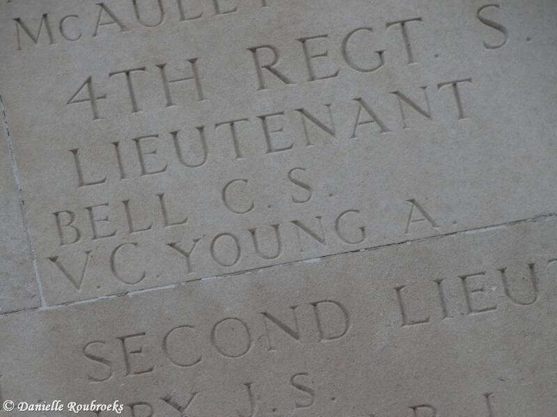 An extract from "The London Gazette", dated 26th Sept., 1916, records the following: "For most conspicuous bravery. He was in command of a Trench Mortar Battery, and advanced with the Infantry in the attack. When our front line was hung up by enfilading machine gun fire Captain Bell crept forward and shot the machine gunner. Later, on no less than three occasions, when our bombing parties, which were clearing the enemy's trenches, were unable to advance, he went forward alone and threw Trench Mortar bombs among the enemy. When he had no more bombs available he stood on the parapet, under intense fire, and used a rifle with great coolness and effect on the enemy advancing to counter-attack. Finally he was killed rallying and reorganising infantry parties which had lost their officers. All this was outside the scope of his normal duties with his battery. He gave his life in his supreme devotion to duty."