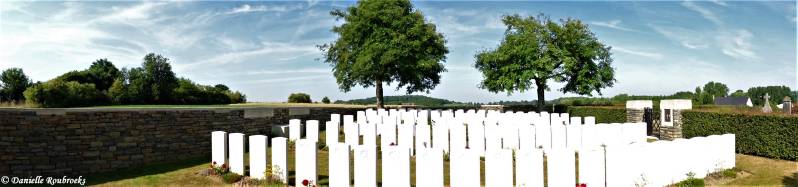 The EXTENSION contains 106 First World War burials, 54 of them unidentified. The COMMUNAL CEMETERY contains 24 Commonwealth burials of the First World War, and one French grave. There are also four Second World War burials, one of which is unidentified.