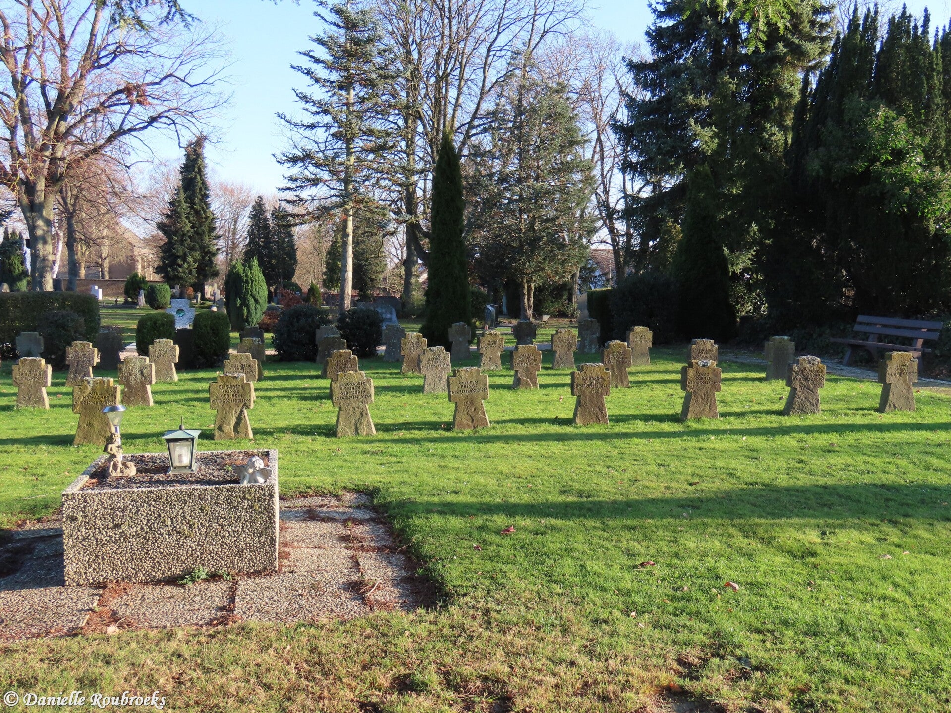 Field of honour with one German war grave from the First World War and 51 from the Second World War.