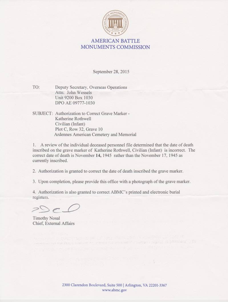 November 15: IRS from liaison officer requests that remains be interred in Neuville, Belgium. Request approved by Colonel Freeman and coordinates with the ABMC.