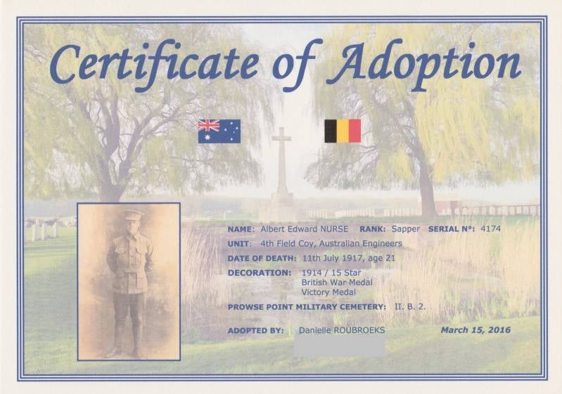 11 July 1917: Albert survived Gallipoli to be killed in the trenches between the La Douve and the Warnave rivers in Belgium.