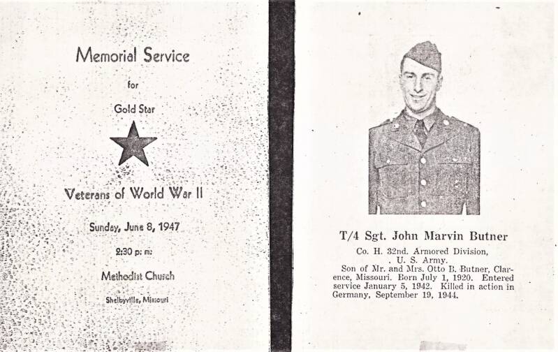 The Gold Star citation is awarded to the next of surviving kin of John Butner.