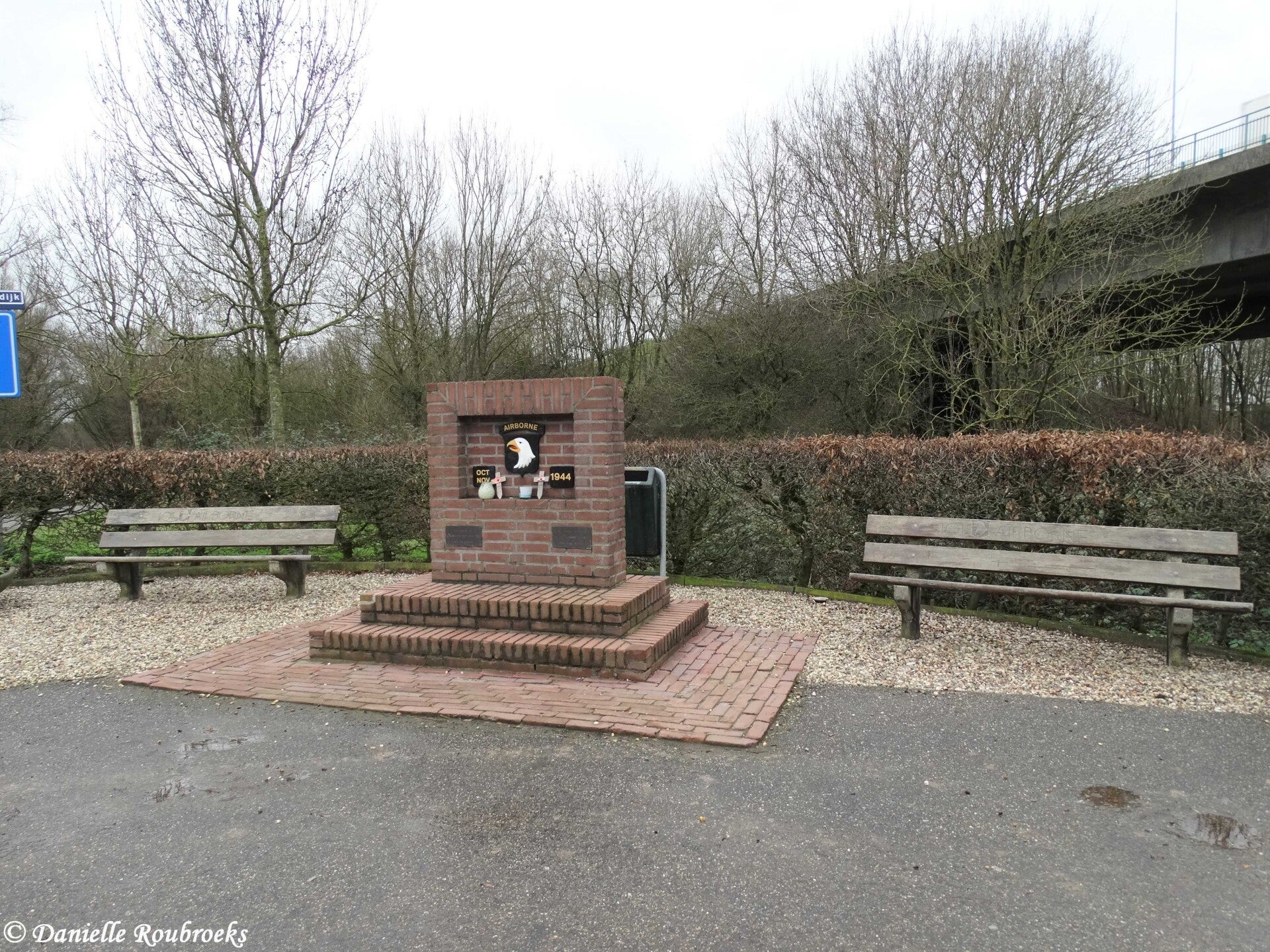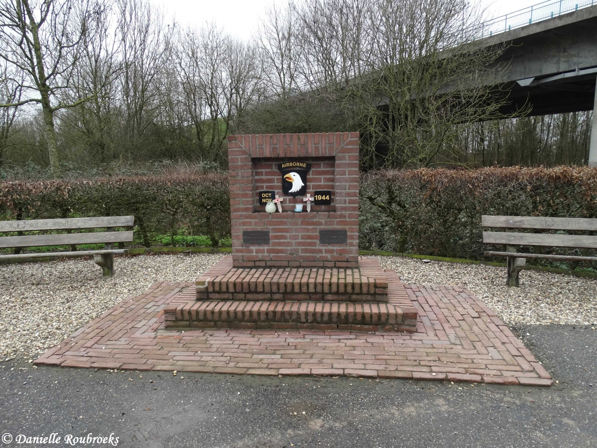 This monument stands just outside Heteren on the dike under the bridge of the A 50 highway over the Nederrijn and is a monument with next to it a bench. The 'Monument for the American 101st Airborne Division' in Heteren (municipality of Overbetuwe) was established in honor of this division and in memory of the fallen soldiers.
