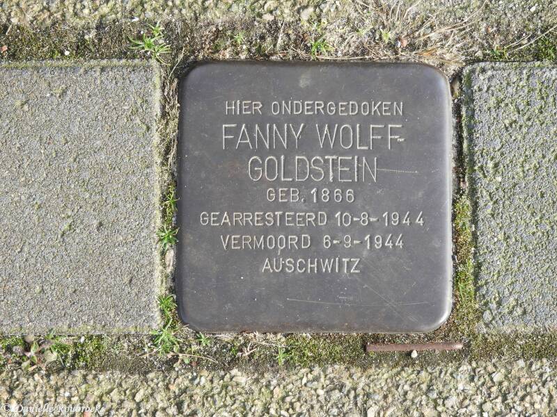 Fanny Wolff-Goldstein, 78 years old, born on March 17, 1866 in Bochum, living Lomstraat 3 in Venlo (pension). On August 10, 1944, the Heusden and Hanssen families on the Lottumseweg in Grubbenvorst were unexpectedly searched by the Sicherheitsdienst, led by the infamous Johan Berendsen. At Heusden Mrs. Wolff from Venlo and at Hanssen a young man, Joop Veldman from Amsterdam, was arrested. Both were deported to Westerbork and taken on 3 September 1944 with the last (68th) transport to Auschwitz, where Mrs. Wolff was killed on 6 September 1944.