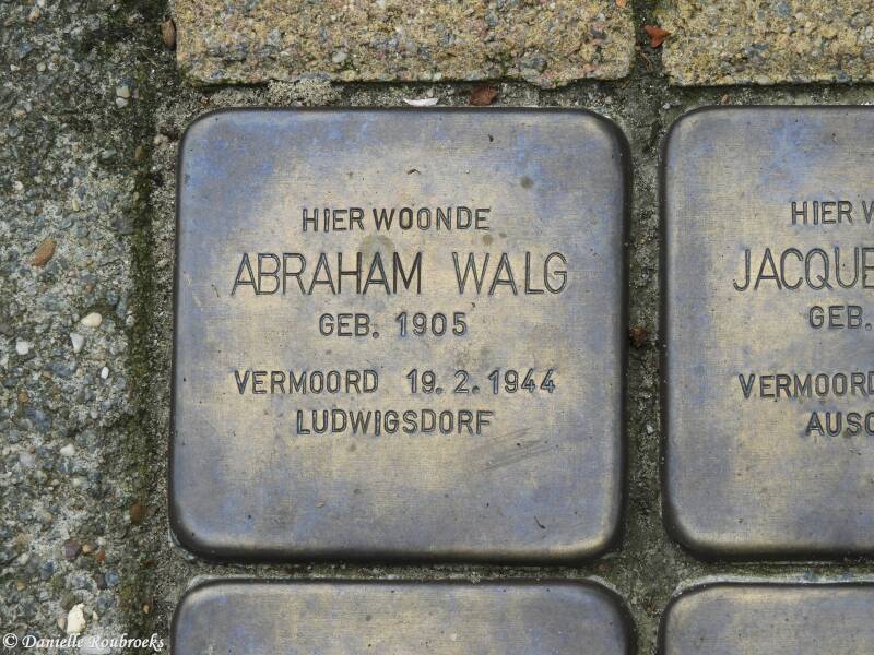 Abraham Walg was born in Bergen op Zoom on August 16, 1905 as the son of Marcus Joseph Walg and Debora Polak. On December 14, 1933, he married 25-year-old Ester Cracau from Vlissingen. Ester was the daughter of Victor Cracau and Engeltje Frank.