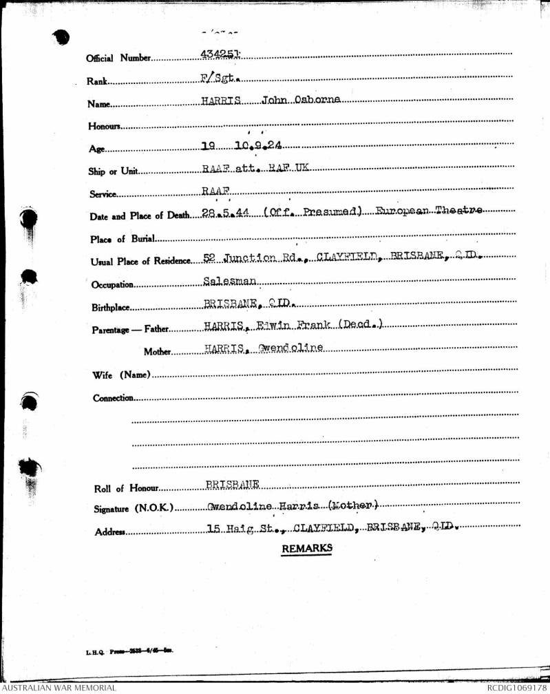 Flight Sergeant John Osborne HARRIS (434251) RAAF