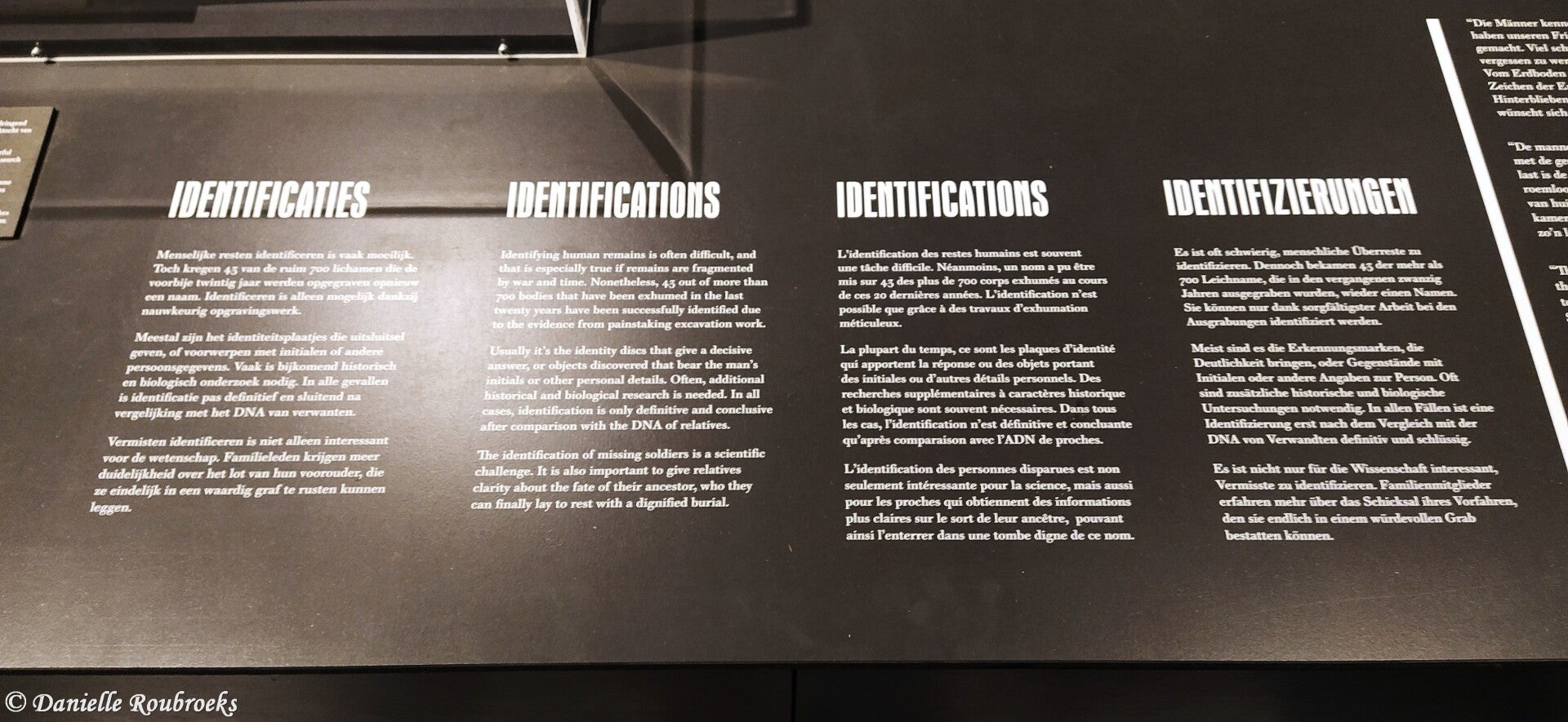 The exhibition focuses on the human suffering of war, with revealing figures and graphs, Disparubut also with personal objects and archive documents. You read letters from parents desperately in search for their missing sons. You stand face to face with the excavated possessions that soldiers carried with them at the fatal moment. Often it is these personal objects that can lead to their identification.