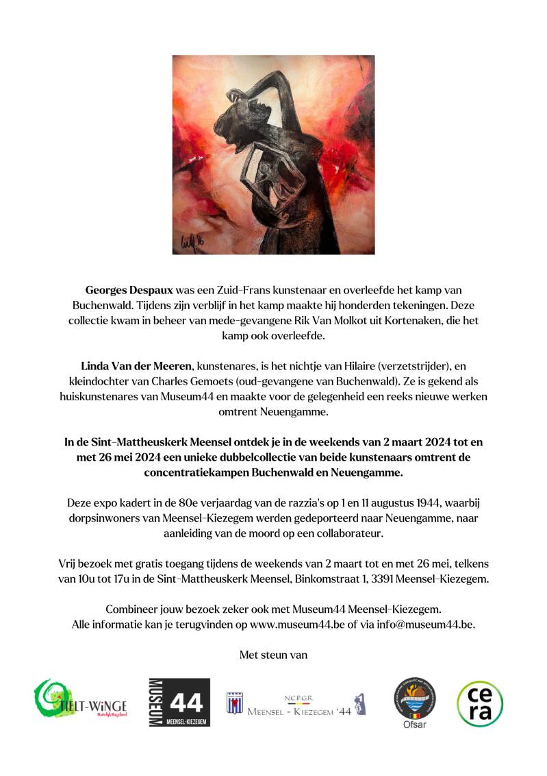 From March to the end of May we exhibit the collection of Georges Despaux & Linda Van der Meeren, with works of art about Buchenwald and Neuengamme.
