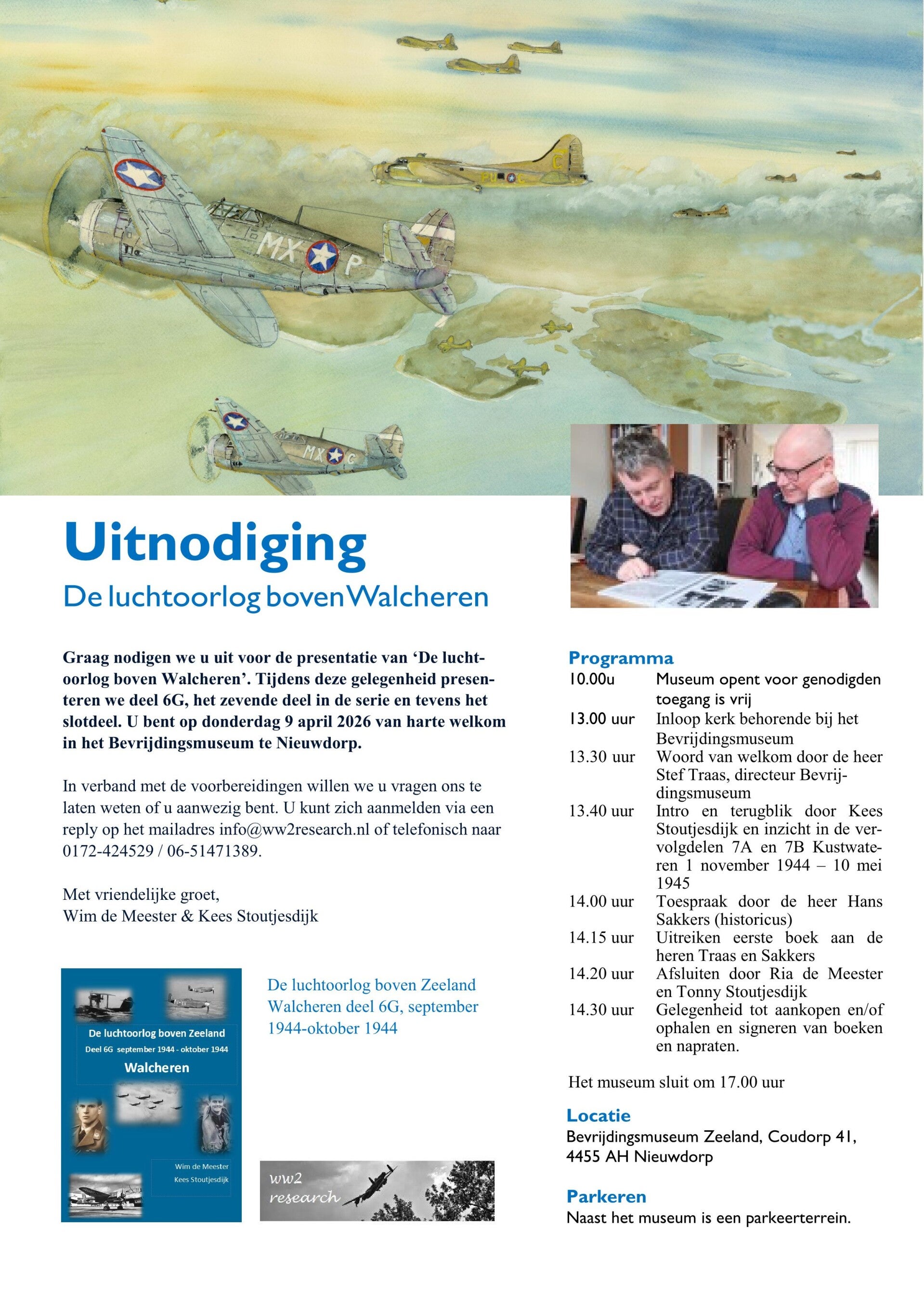 Book presentation in Bevrijdingsmuseum Nieuwdorp on Thursday 9th April 2026, in the presence of civilian and military representatives. ‘De luchtoorlog boven Zeeland, Deel 6G Walcheren’. - Wim de Meester - Kees Stoutjesdijk.